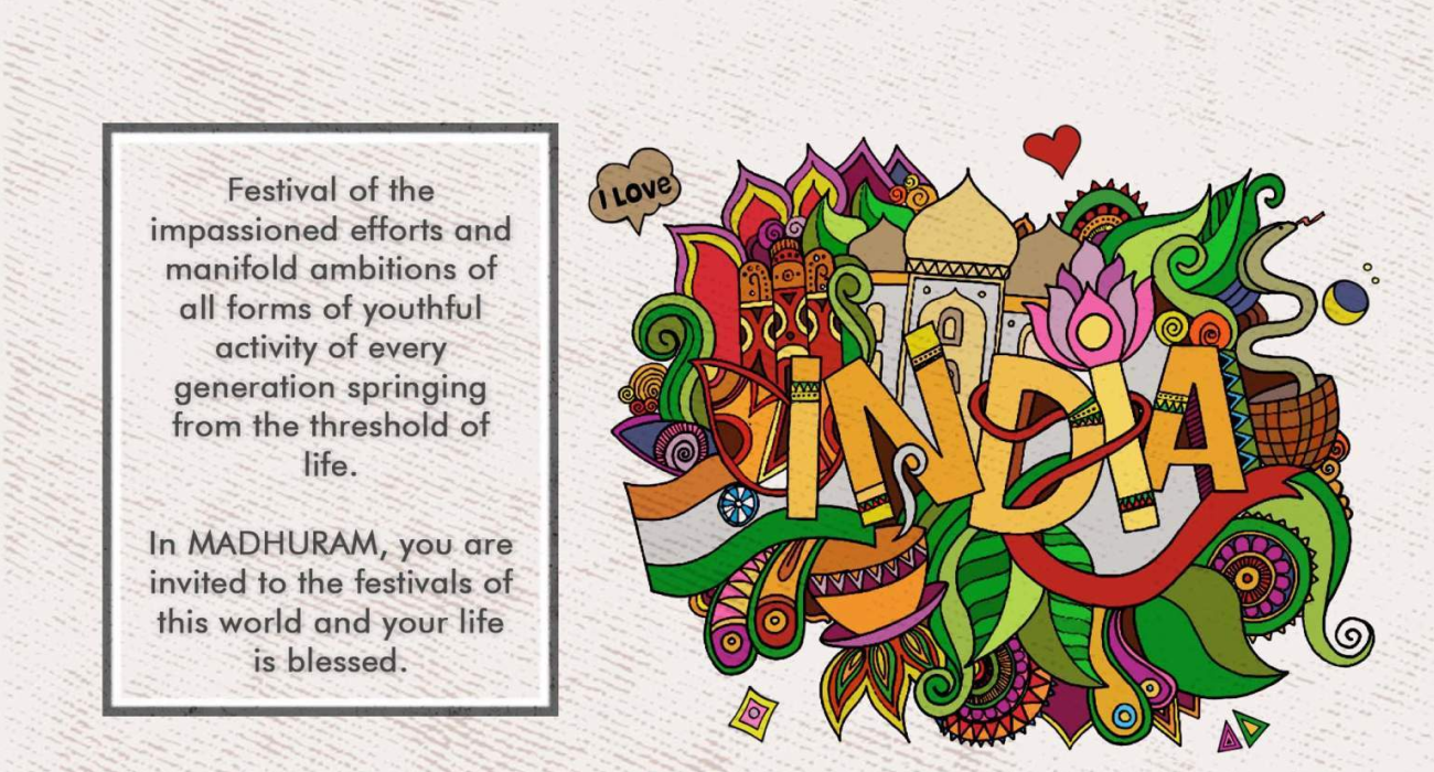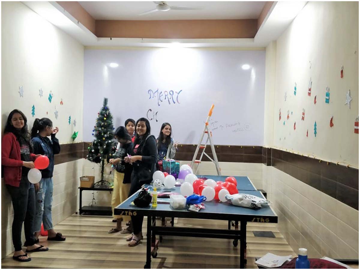 In Madhuram, Festivals become a family because you start seeing the same people.We celebrate all festivals be it Holi, Diwali, Ganesh Chaturthi, Eid, Christmas, etc. These are our festivals and on these days we are all Indians. We celebrate each festival by maintaining the spirit of sisterhood, along with special meals and decorations done by students themselves as a part of recreational activity. The traditional mess menu is icing on the cake amidst the festivities and celebrations.
